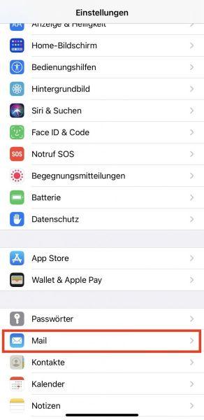 1. Unter dem Menü Einstellungen wähle Mail aus: