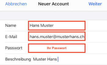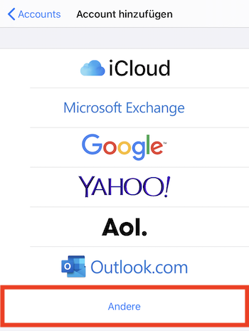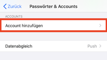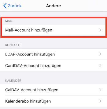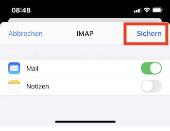 8. Nachdem die Account-Informationen überprüft wurden, wähle Mail aus und tippe auf Sichern. Der Account wurde nun eingerichtet.