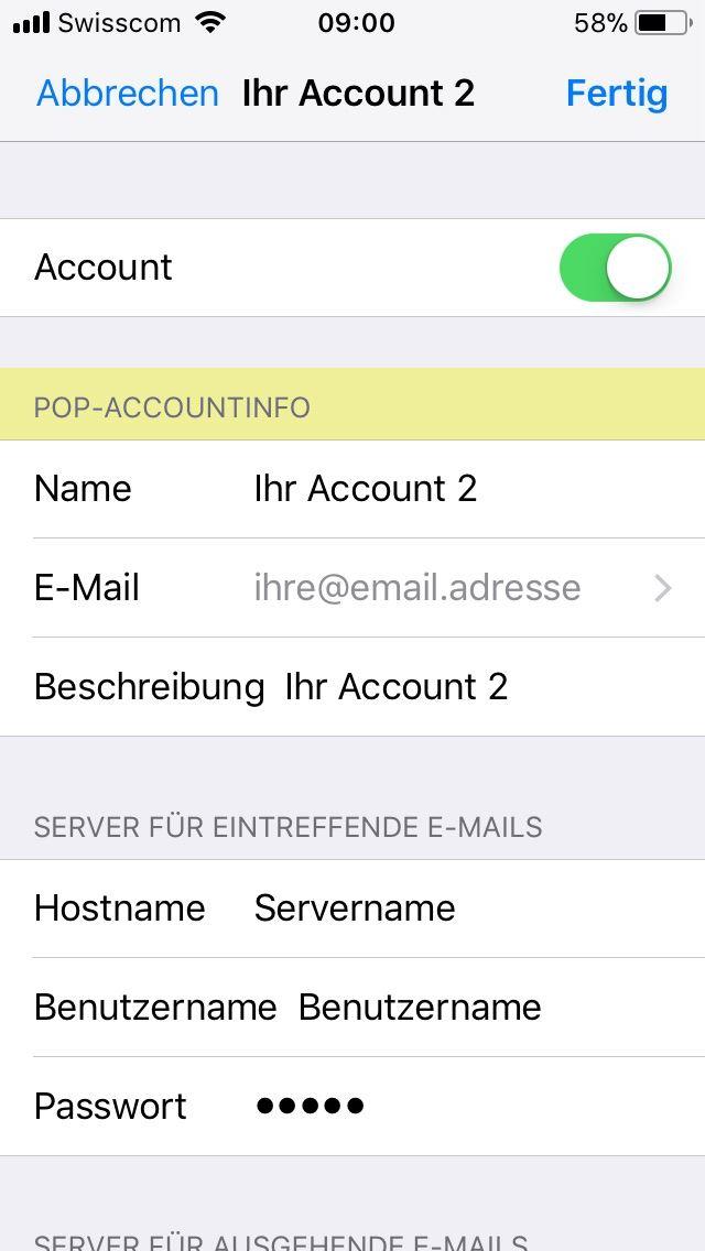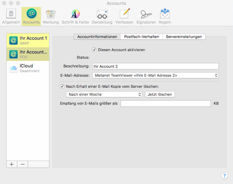 02. Unter Account ist nun ersichtlich, ob POP3 oder IMAP verwendet wird: