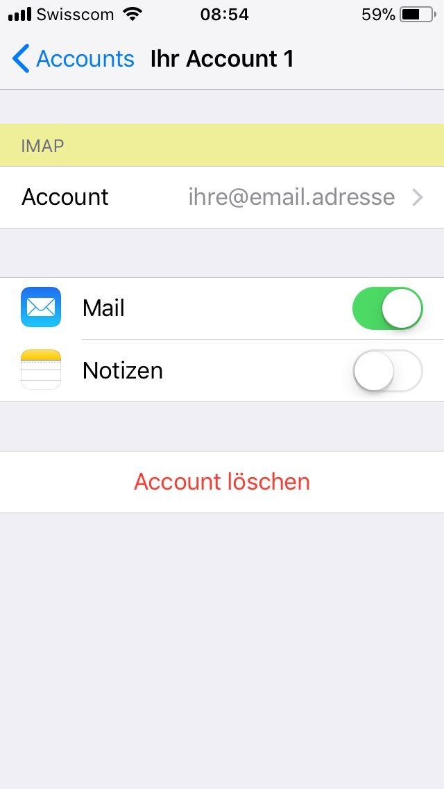 01. Ruf die Einstellungen für Konten auf und wähl den Account aus.