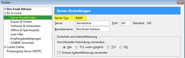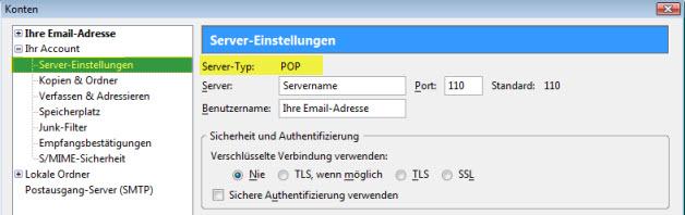 02. Geh auf Server-Einstellungen und unter Server-Typ ist ersichtlich, ob POP3 oder IMAP verwendet wird: